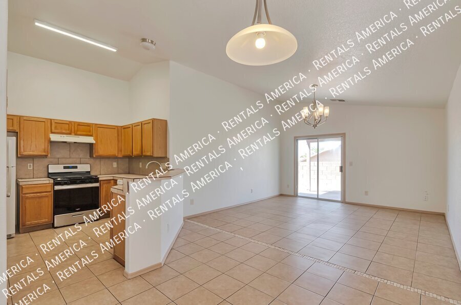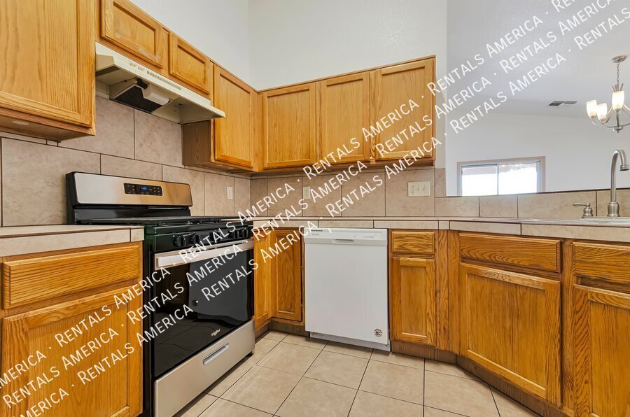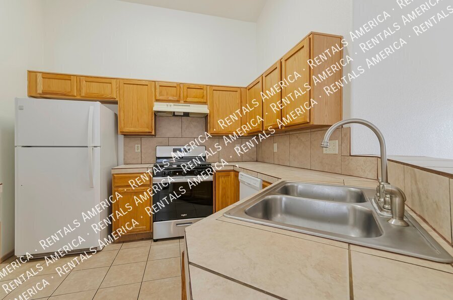 Very well taken care of home with B. Large, open kitchen with breakfast bar has tile countertops & tile backsplash. No carpet tile floors throughout.